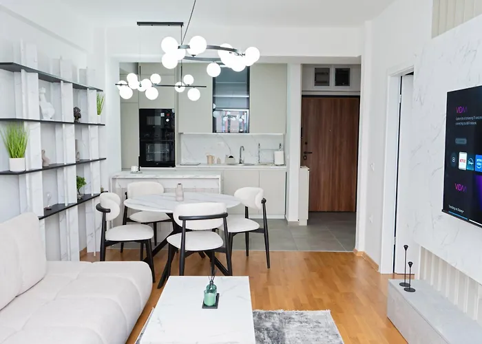 Appartamento Eastgate Skyline Skopje, di 52 m², comprende una terrazza e si trova a circa 25 minuti a piedi dal Ponte di Pietra. Quest'appartamento offre un parcheggio privato all'interno della struttura e comfort moderni come Wi-Fi.